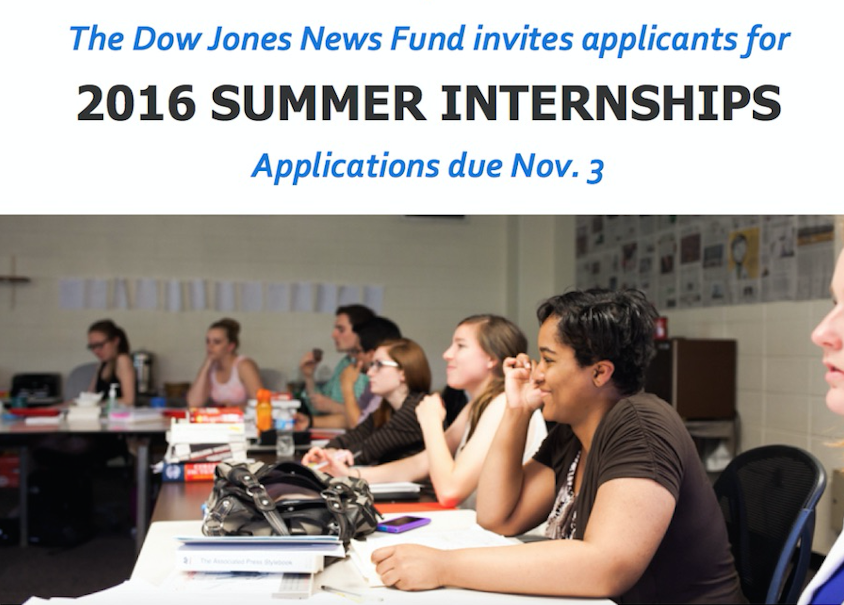 College juniors, seniors and graduate students are invited to apply to the Dow Jones News Fund for paid summer 2016 internships in data journalism, digital media, business reporting and news editing.